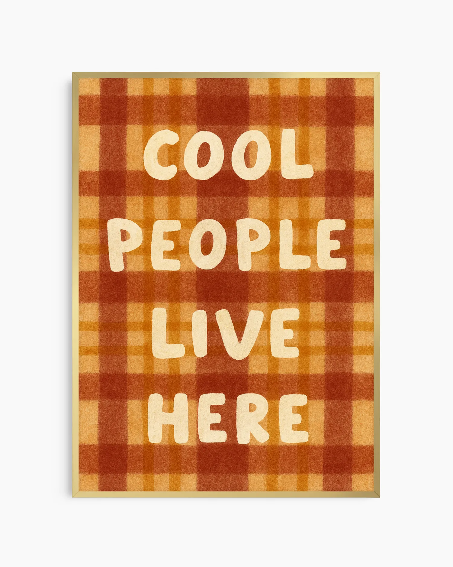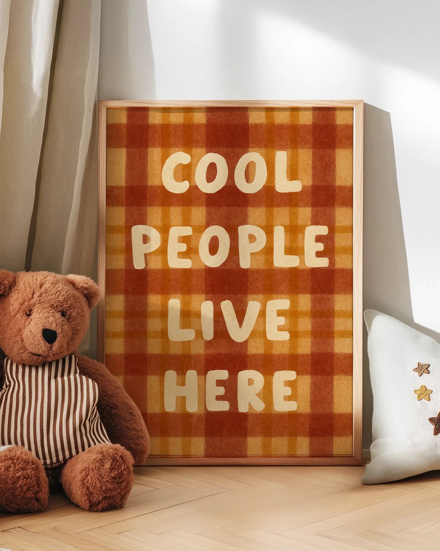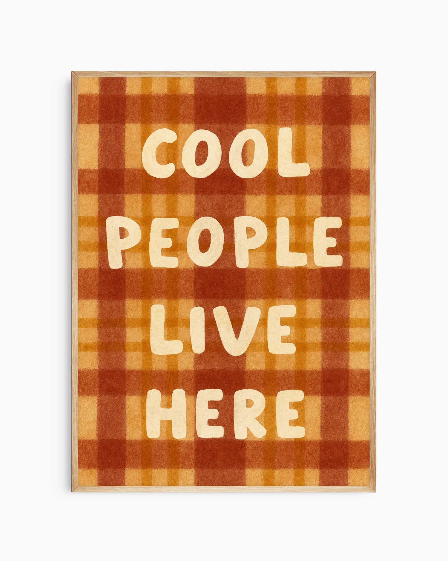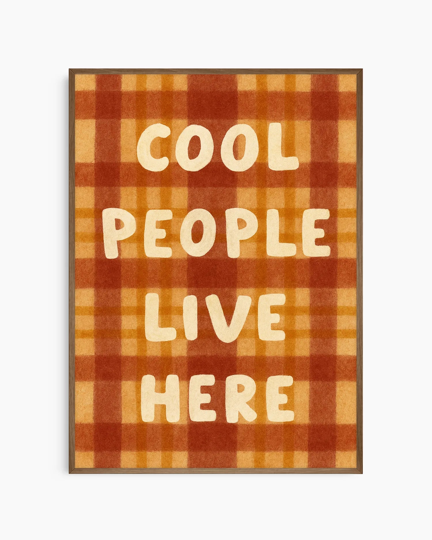 Šiltas, retro įkvėptas languoto rašto plakatas su žaisminga žinute, suteikiančia bet kuriam kambariui iškart daugiau asmeniškumo.