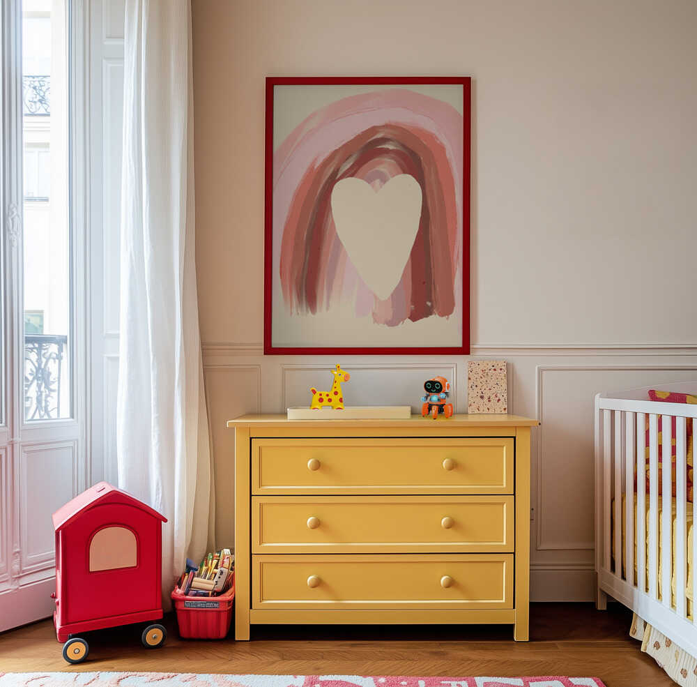 Įneškite švelnių spalvų ir ramybės į savo namus su šiuo subtiliu meno kūriniu, sukurtu rožinių ir kreminių atspalvių paletėje. Minimalistinė kompozicija ir subalansuota spalvų gama sukuria taikią ir harmoningą atmosferą, neerzindama erdvės. Sukurta būti kartu laiko nepavaldi ir žaisminga – puikiai atrodo virš kūdikio lovelės, skaitymo kampelio ar darbo stalo. Tai elegantiškas ir šiltas pasirinkimas vaikų kambariui, kūdikio erdvei ar moderniems šeimos namams. Lengvai derinama su skandinaviško stiliaus interjeru ir galerijos tipo sienomis. Atspausdinta ant aukščiausios kokybės matinio muziejinio popieriaus, kuris išlaiko spalvas ir detales daugelį metų.